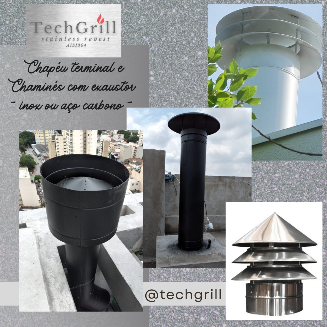 - Chaminé e chapéu aletado em aço Inox AISI304 ou galvanizado reforçado
